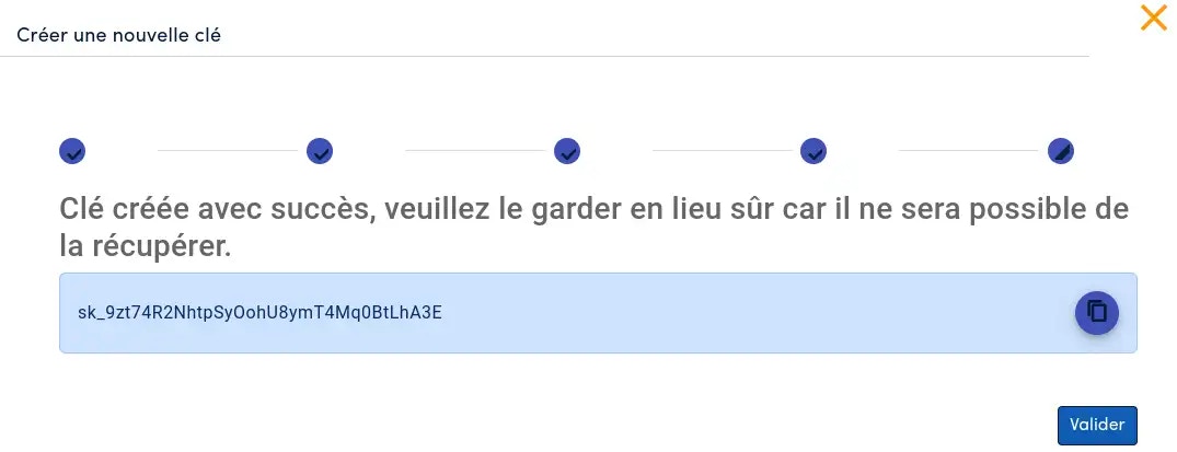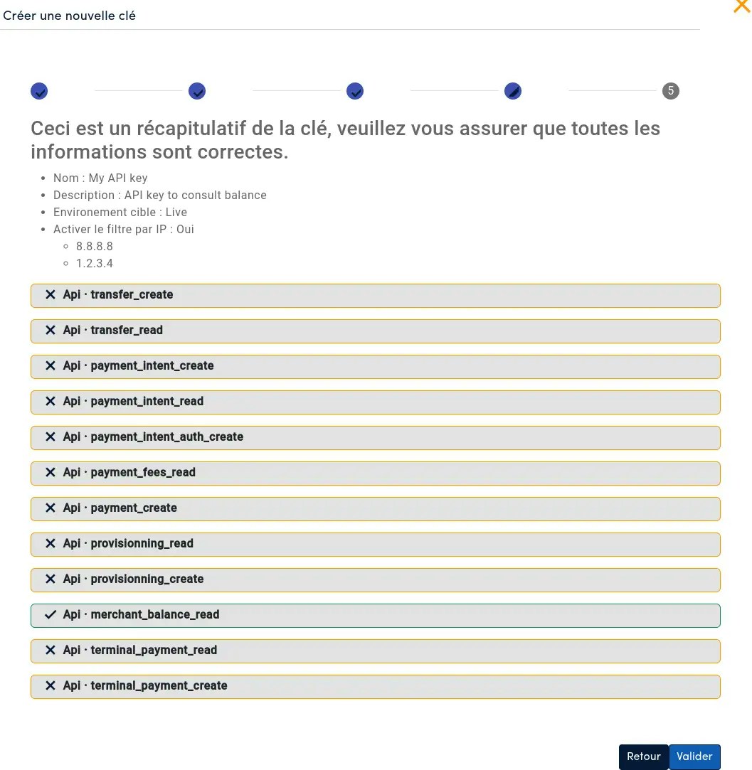 The API key is only visible when it is created and can no longer be consulted after this stage, for security reasons.